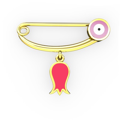 8 ayar altın nazar iğnesi (Pastel pembe mineli)