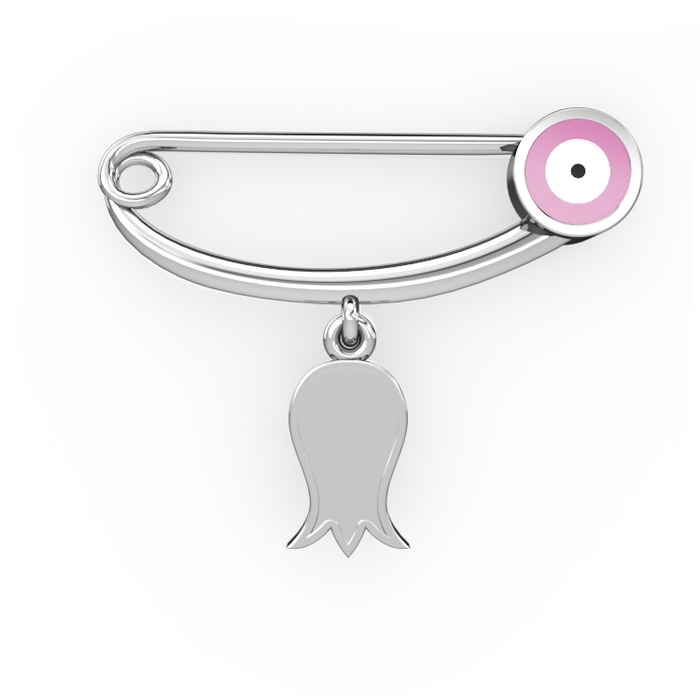 925 ayar gümüş nazar iğnesi (Pastel pembe mineli)