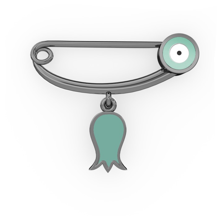 925 ayar siyah rodyum kaplama gümüş nazar iğnesi (Pastel mavi mineli)