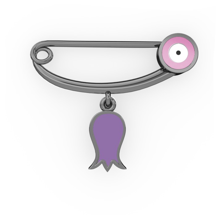 925 ayar siyah rodyum kaplama gümüş nazar iğnesi (Pastel pembe mineli)