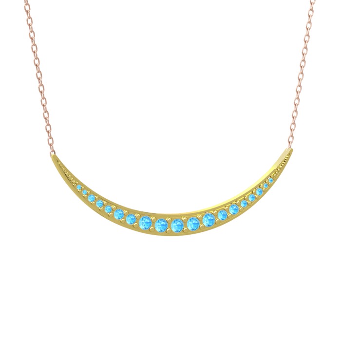 Akuamarin 14 ayar altın kolye (40 cm rose altın rolo zincir)