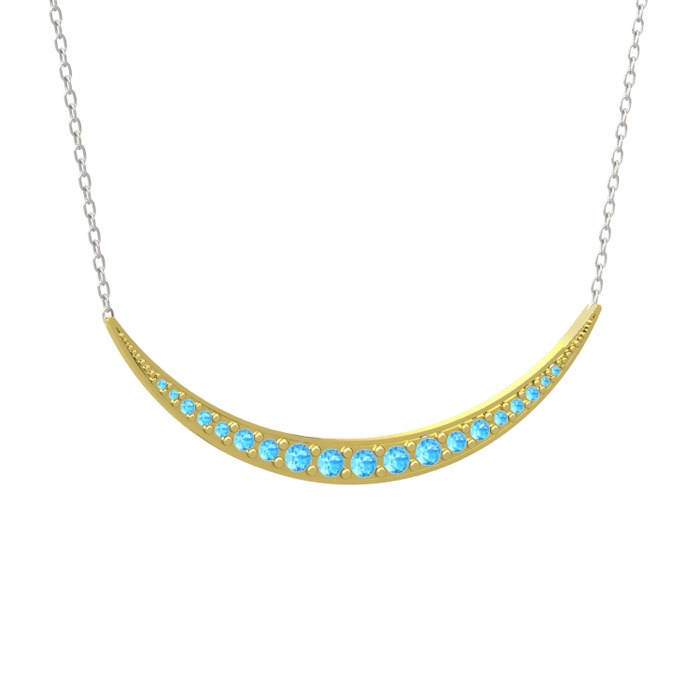 Akuamarin 18 ayar altın kolye (40 cm beyaz altın rolo zincir)