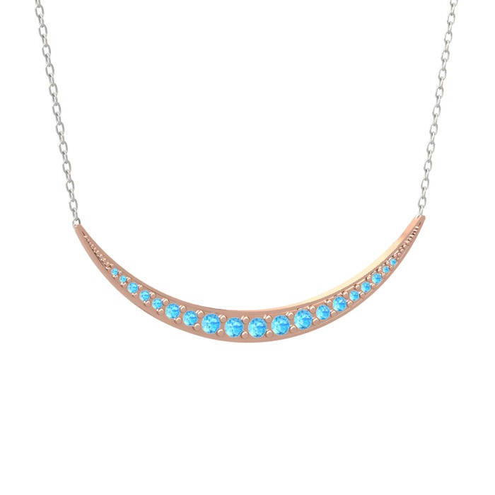 Akuamarin 18 ayar rose altın kolye (40 cm beyaz altın rolo zincir)