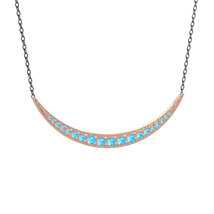 Akuamarin 8 ayar rose altın kolye (40 cm gümüş rolo zincir)