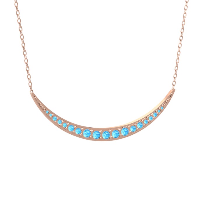 Akuamarin 8 ayar rose altın kolye (40 cm rose altın rolo zincir)