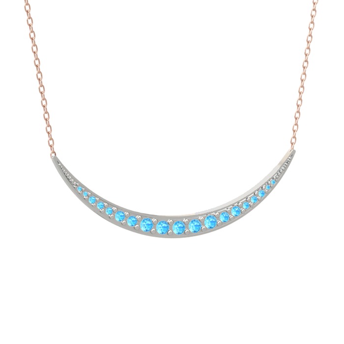 Akuamarin 925 ayar gümüş kolye (40 cm rose altın rolo zincir)