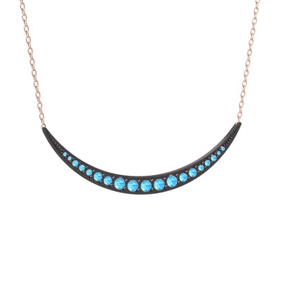 Lali Ay Kolye - Akuamarin 925 ayar siyah rodyum kaplama gümüş kolye (40 cm gümüş rolo zincir)