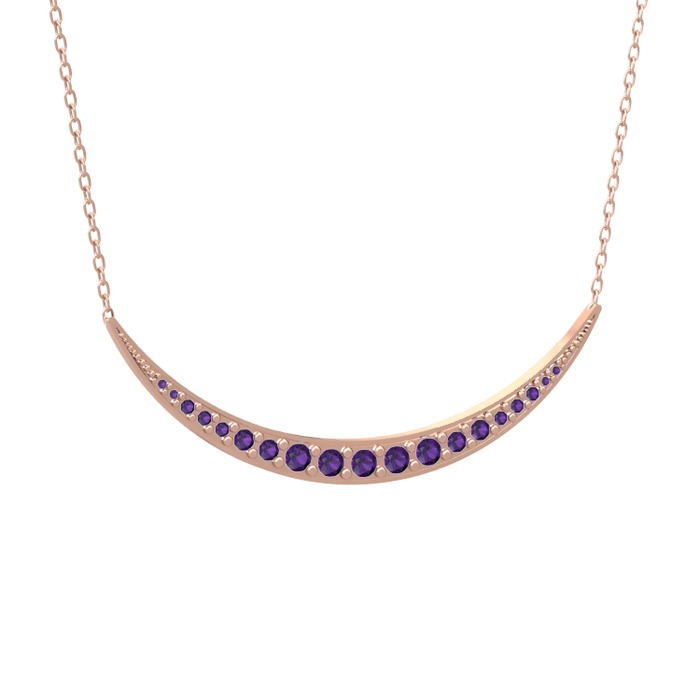 Ametist 14 ayar rose altın kolye (40 cm rose altın rolo zincir)