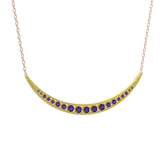 Ametist 18 ayar altın kolye (40 cm gümüş rolo zincir)