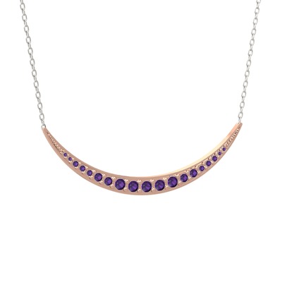 Ametist 18 ayar rose altın kolye (40 cm gümüş rolo zincir)