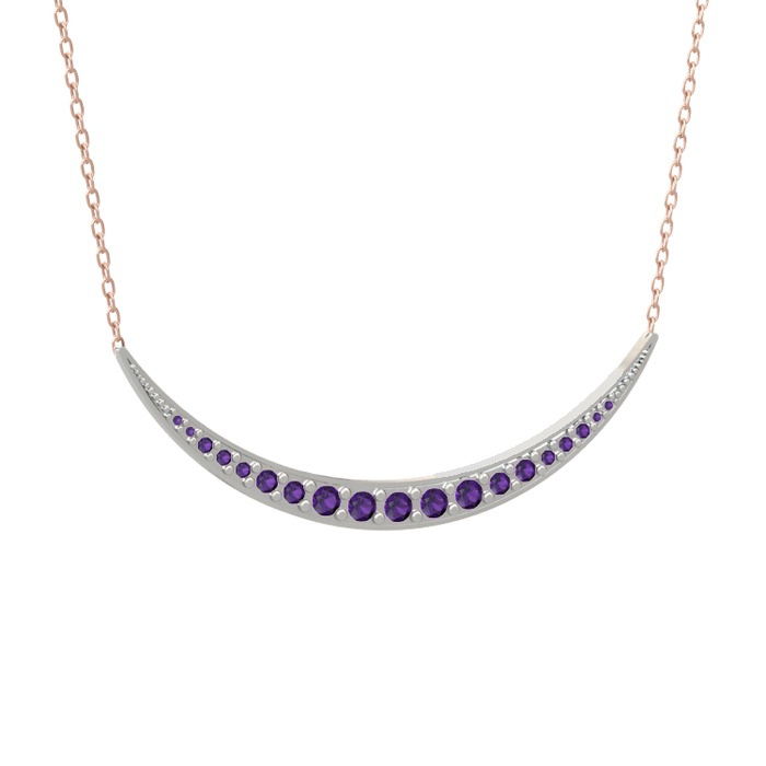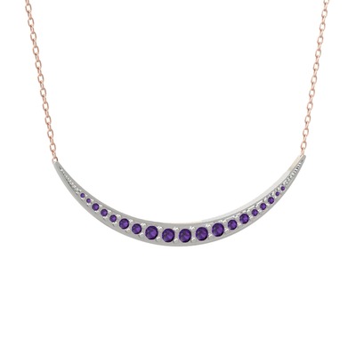 Ametist 925 ayar gümüş kolye (40 cm rose altın rolo zincir)