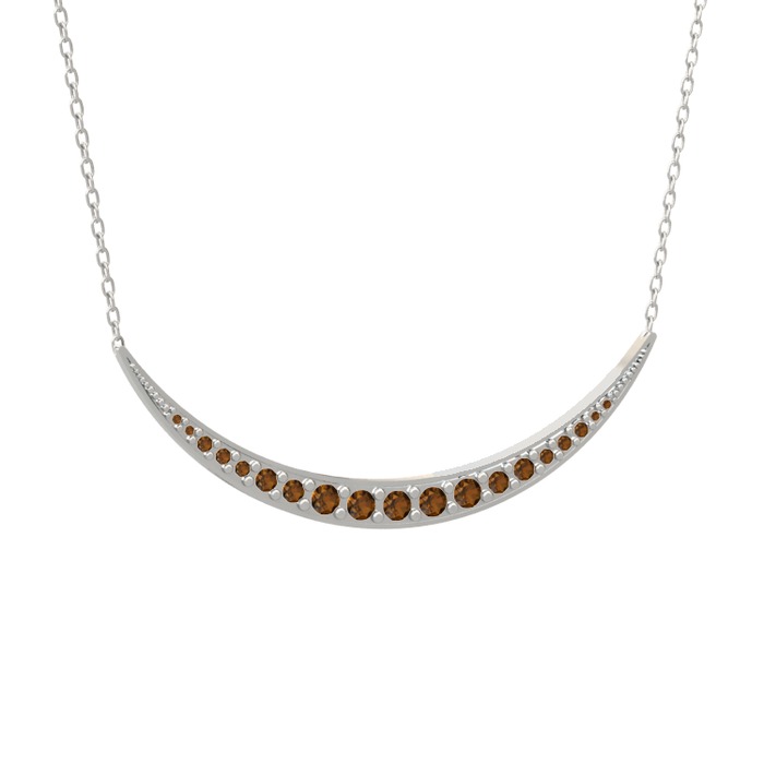 Dumanlı kuvars 18 ayar beyaz altın kolye (40 cm gümüş rolo zincir)