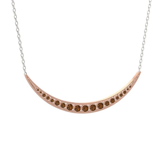Dumanlı kuvars 18 ayar rose altın kolye (40 cm beyaz altın rolo zincir)
