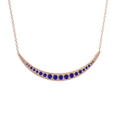 Lab safir 18 ayar rose altın kolye (40 cm rose altın rolo zincir)