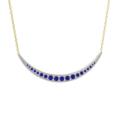 Lab safir 8 ayar beyaz altın kolye (40 cm altın rolo zincir)