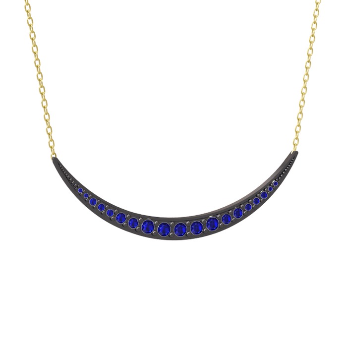 Lab safir 925 ayar siyah rodyum kaplama gümüş kolye (40 cm altın rolo zincir)