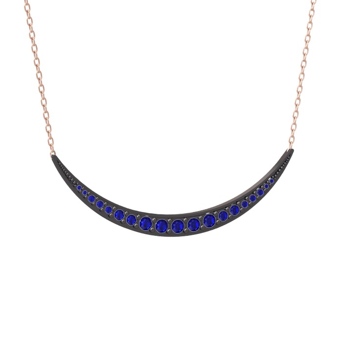 Lab safir 925 ayar siyah rodyum kaplama gümüş kolye (40 cm rose altın rolo zincir)