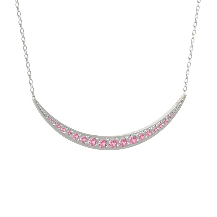Pembe kuvars 14 ayar beyaz altın kolye (40 cm beyaz altın rolo zincir)