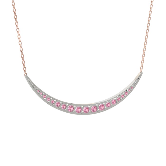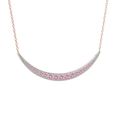 Pembe kuvars 14 ayar beyaz altın kolye (40 cm gümüş rolo zincir)