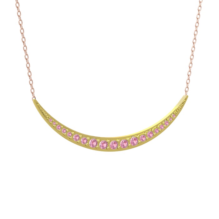 Pembe kuvars 18 ayar altın kolye (40 cm gümüş rolo zincir)