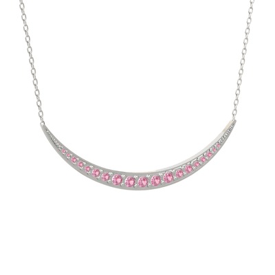 Pembe kuvars 925 ayar gümüş kolye (40 cm beyaz altın rolo zincir)