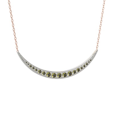 Peridot 18 ayar beyaz altın kolye (40 cm gümüş rolo zincir)