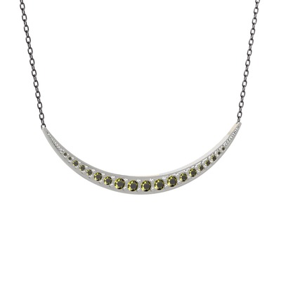 Peridot 8 ayar beyaz altın kolye (40 cm gümüş rolo zincir)