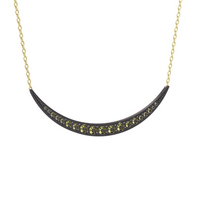 Peridot 925 ayar siyah rodyum kaplama gümüş kolye (40 cm altın rolo zincir)