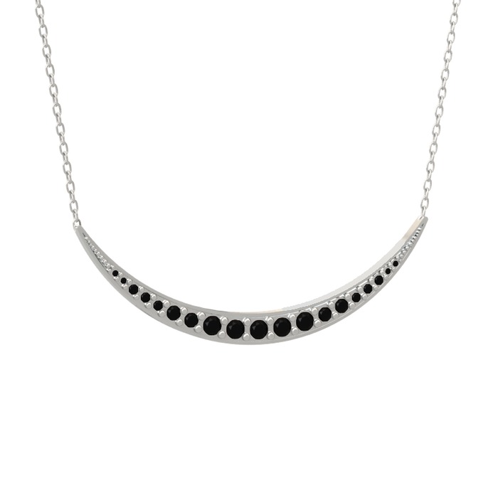 Siyah zirkon 14 ayar beyaz altın kolye (40 cm beyaz altın rolo zincir)