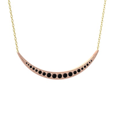 Siyah zirkon 14 ayar rose altın kolye (40 cm altın rolo zincir)