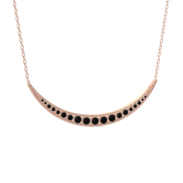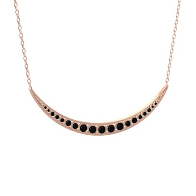 Siyah zirkon 14 ayar rose altın kolye (40 cm rose altın rolo zincir)