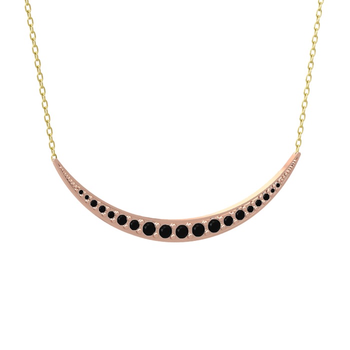 Siyah zirkon 18 ayar rose altın kolye (40 cm altın rolo zincir)