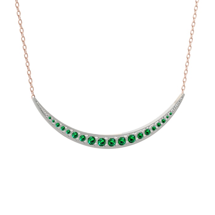 Yeşil kuvars 14 ayar beyaz altın kolye (40 cm rose altın rolo zincir)