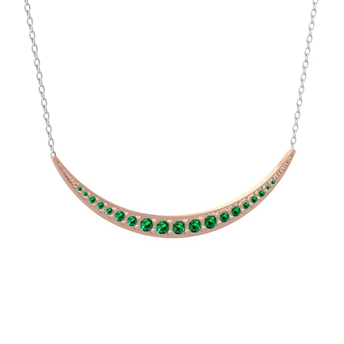 Yeşil kuvars 8 ayar rose altın kolye (40 cm beyaz altın rolo zincir)