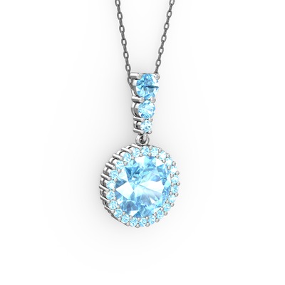 Akuamarin 18 ayar beyaz altın kolye (40 cm gümüş rolo zincir)