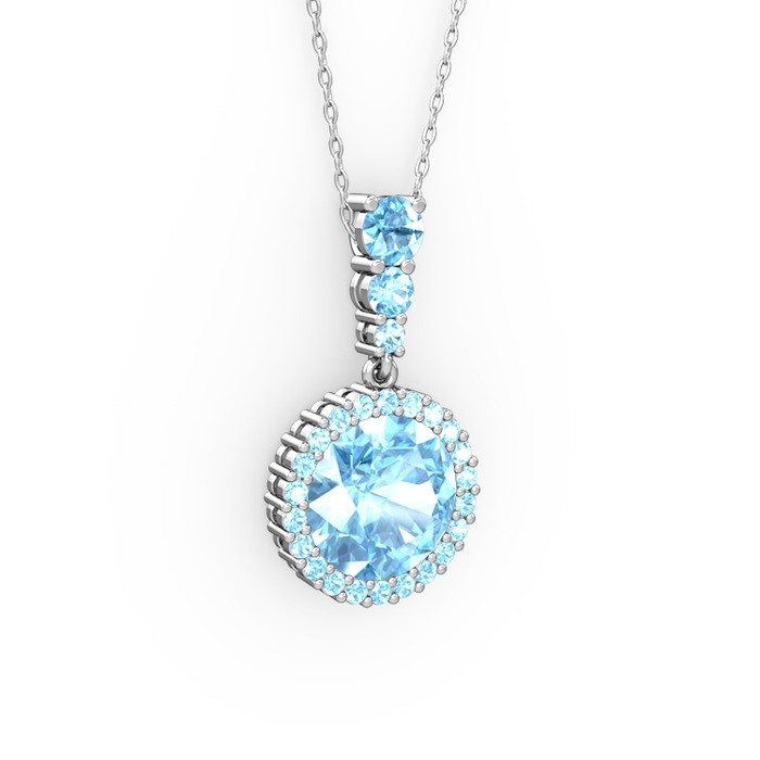 Akuamarin 8 ayar beyaz altın kolye (40 cm beyaz altın rolo zincir)