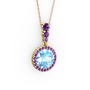 Akuamarin ve ametist 18 ayar altın kolye (40 cm rose altın rolo zincir)