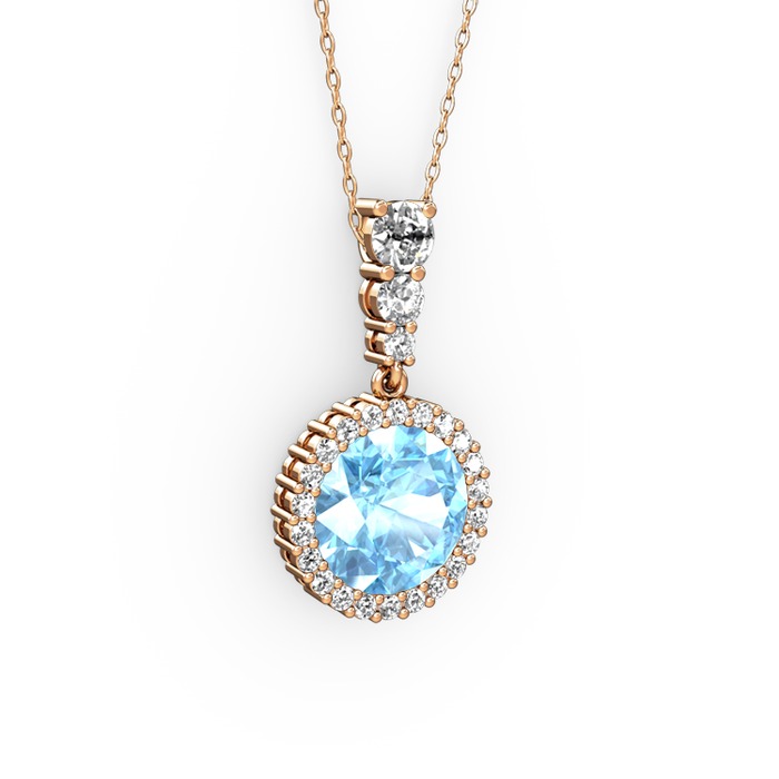 Akuamarin ve beyaz zirkon 18 ayar rose altın kolye (40 cm rose altın rolo zincir)