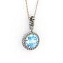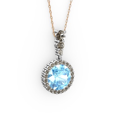 Akuamarin ve dumanlı kuvars 18 ayar beyaz altın kolye (40 cm rose altın rolo zincir)