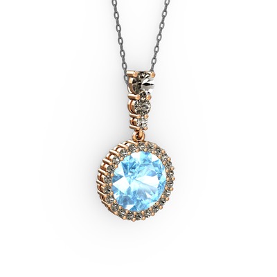 Akuamarin ve dumanlı kuvars 8 ayar rose altın kolye (40 cm gümüş rolo zincir)