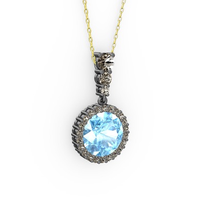 Akuamarin ve dumanlı kuvars 925 ayar siyah rodyum kaplama gümüş kolye (40 cm altın rolo zincir)