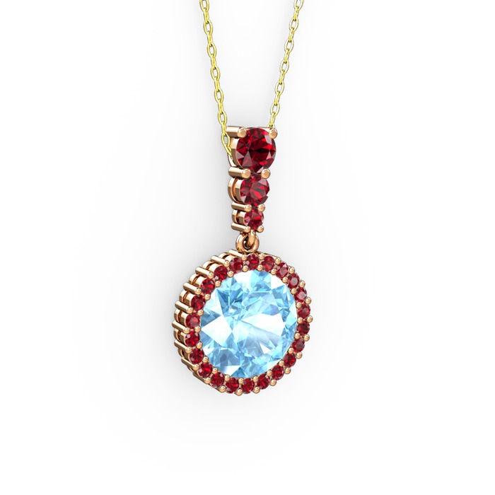 Akuamarin ve garnet 14 ayar rose altın kolye (40 cm altın rolo zincir)