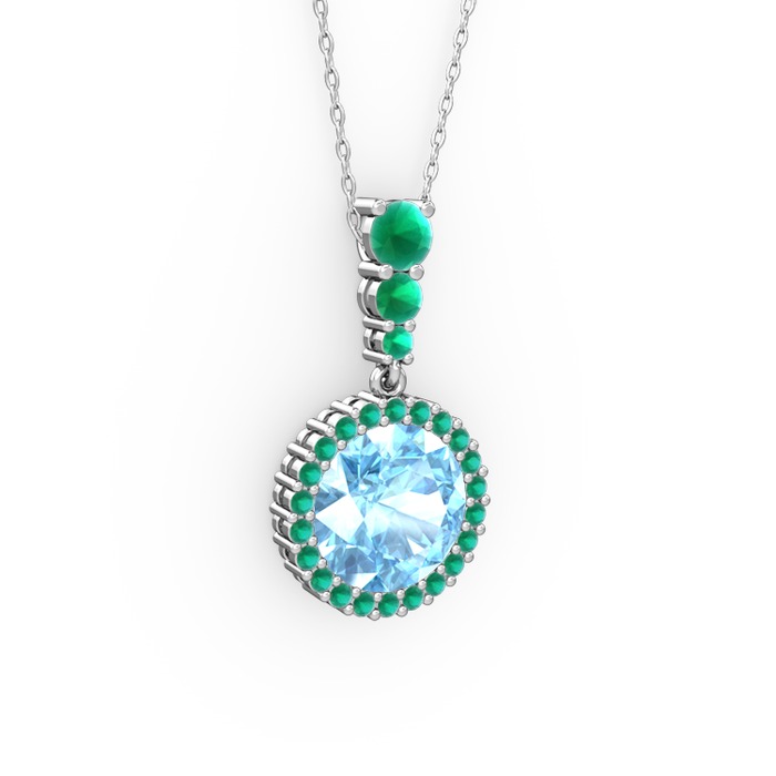 Akuamarin ve kök yakut 18 ayar beyaz altın kolye (40 cm beyaz altın rolo zincir)