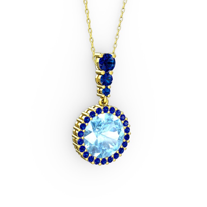 Akuamarin ve lab safir 8 ayar altın kolye (40 cm altın rolo zincir)