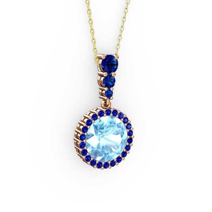 Akuamarin ve lab safir 925 ayar rose altın kaplama gümüş kolye (40 cm gümüş rolo zincir)