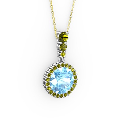 Akuamarin ve peridot 8 ayar beyaz altın kolye (40 cm altın rolo zincir)