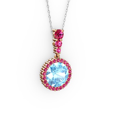 Akuamarin ve rodolit garnet 925 ayar rose altın kaplama gümüş kolye (40 cm gümüş rolo zincir)