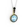 Akuamarin ve siyah zirkon 925 ayar altın kaplama gümüş kolye (40 cm beyaz altın rolo zincir)