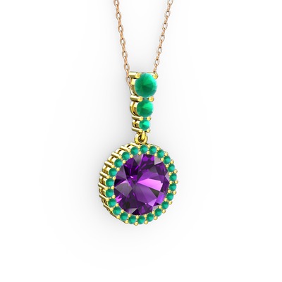 Ametist ve kök yakut 14 ayar altın kolye (40 cm gümüş rolo zincir)