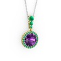 Ametist ve kök yakut 925 ayar altın kaplama gümüş kolye (40 cm gümüş rolo zincir)